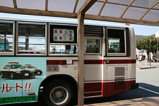 秋のことですでに太陽は傾いています。 さすがに寄島方面へ向けてはお客も見られます。 この調子で今後も路線存続できるでしょうか。 中国バス 井笠バスカンパニー 中国バス 井笠バスカンパニーです。 なにやら長くて判りにくい名前ですが、旧井笠鉄道の路線バスです。 井笠鉄道は経営不振のため、2012年10月末を以って全ての路線を廃止し会社整理へと進みました。 一部の路線を、近隣の中国バスが社内カンパニーを設立して暫定的に2013年3月末までの期限付きで引き継ぎました。 なにぶんローカル路線ばかりのため、4月以降の展開は不透明です。 尚、発表から廃止までわずか20日間の短期に緊急対応のため、本路線は法的には一般乗合路線ではなく、貸切便の扱いです。 本コーナーでは主に「(中国)井笠バス」と表記します。