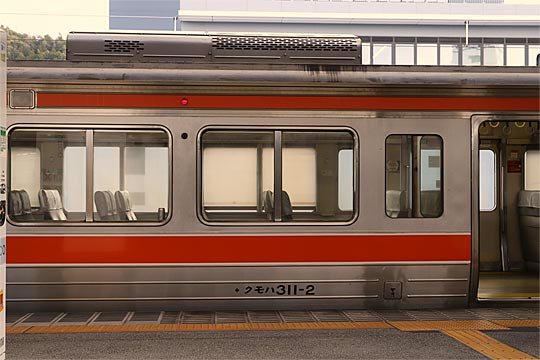 311系。 ホーム反対側に、大垣方面から311系の普通列車が到着しました。 ここはJR西日本と東海の境界駅ですので、普通列車は東海からの編成が到着します。 編成自体は4両と短い編成なのですが、結構なお客が乗車していたと見え、しかも乗り換え客の殆どがこの新快速に乗り換えたと思われ、そこそこの混雑になって来ました。 近江長岡あたりからのお客は米原ではなく隣の彦根まで行く方が多いのでしょうが、不便なことではあります。