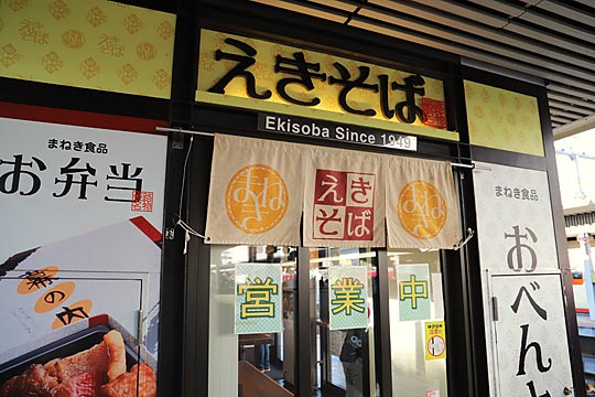 えきそば。 下りホームにもちゃんと駅そば店が。 こちらはデザインは洒落ていますが、上りホームと比べるとフツーの店舗ではあります。 個人的には、姫路駅のシンボルだと思っています。